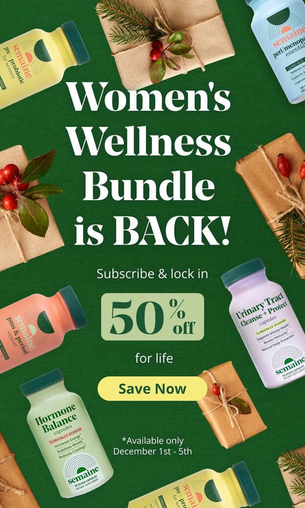 Meet Lauren and Matt, the wife and husband duo of Semaine. With Matt's biology PhD, they developed the first clinically studied PMS supplement for Lar's endometriosis. Inspired, Semaine was created to build a future where women's health and hormones are celebrated and understood.