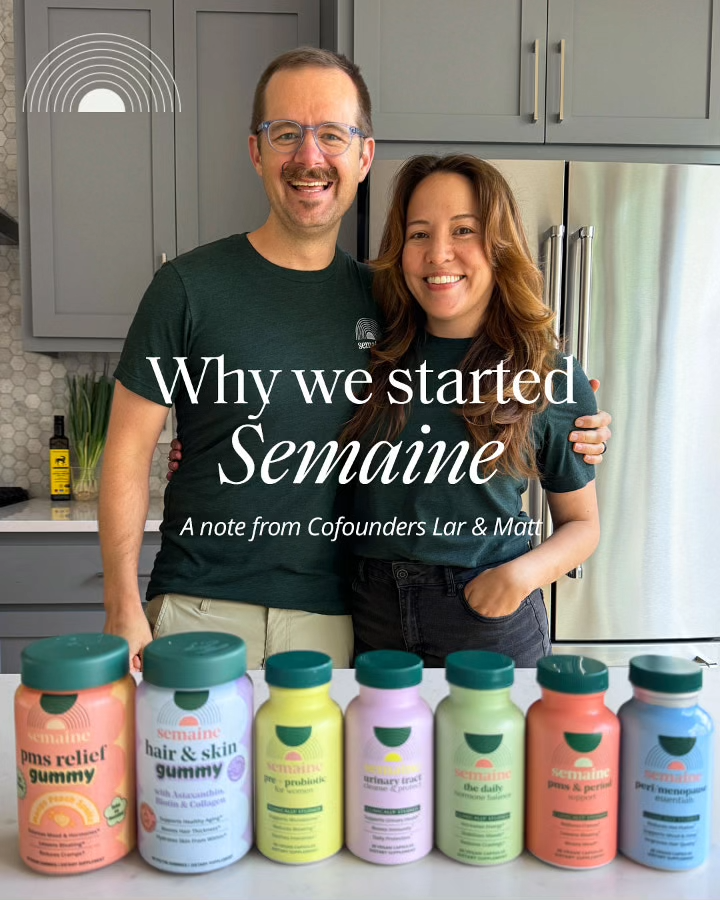 Lar sought solutions for her debilitating periods and endometriosis for years when her husband Matt, a bioengineer, used his expertise to develop a plant-based solution that led to Lar's first pain-free period ever. Realizing Matt’s formula could help more women, they started Semaine to empower others to feel better too.